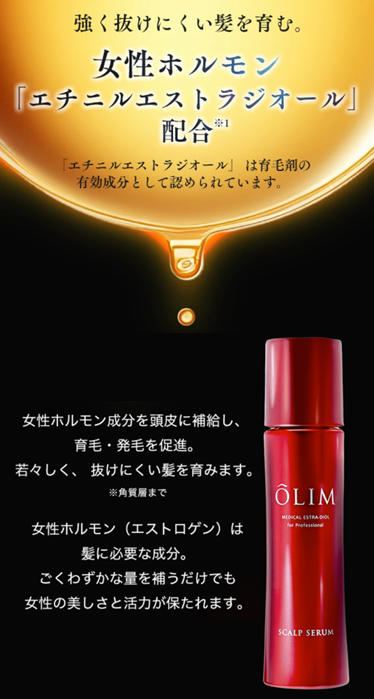 育毛剤の有効成分として認められた女性ホルモン※エスチルエストラジオール配合だから抜け毛予防だけではなく発毛促進育毛を期待する方にもオススメ!